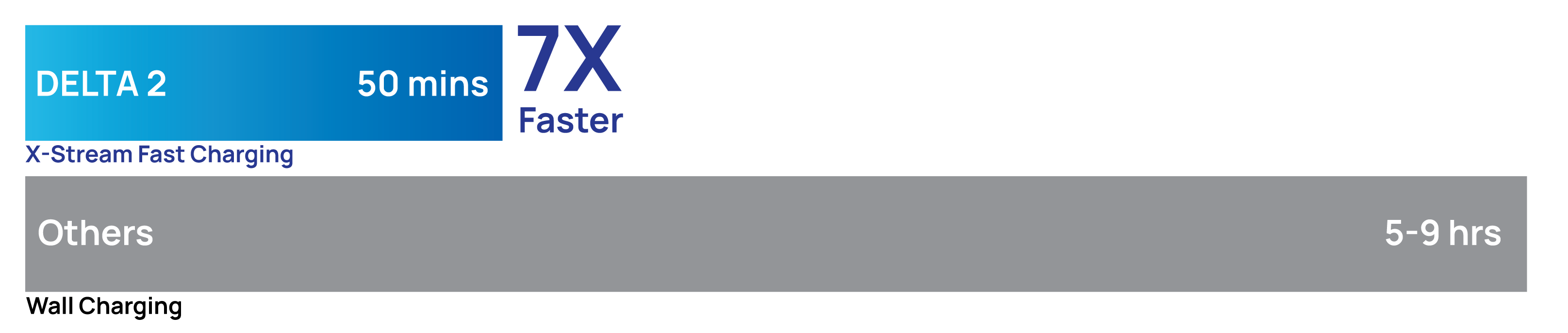 X-Stream tech means you can charge from 0-80% in 50 mins*, that’s faster than you’ll pack your trunk for the next road trip. To iterate just how fast that is–it’s 7x faster than other power stations on the market.