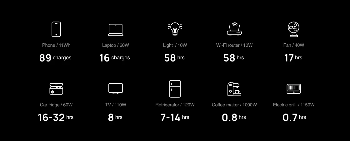 Storing energy in a battery means you can power things for hours or days on end indoors or out. All without access to the grid. DELTA 2 lets you store 1kWh. In other words, it's a ton of energy to power your essentials. Unlike smaller batteries, it can keep refrigerators, phones, and even hotplates powered for extended periods.
