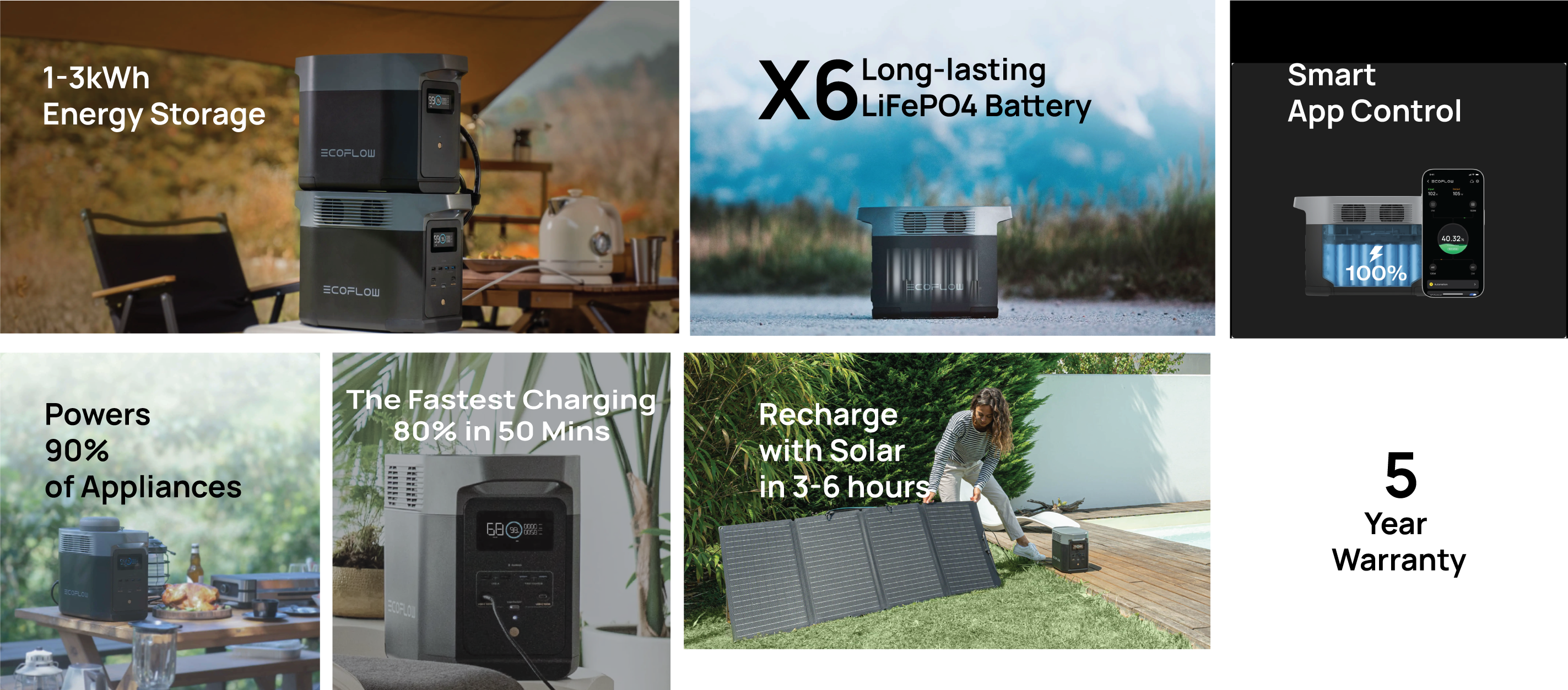 EcoFlow DELTA 2 isn’t just a battery. It gives your home power security & provides you with stored energy to take anywhere to power pretty much anything. All in a portable, handy design. Ideal for home power backup, RVs, tents, or on the go.